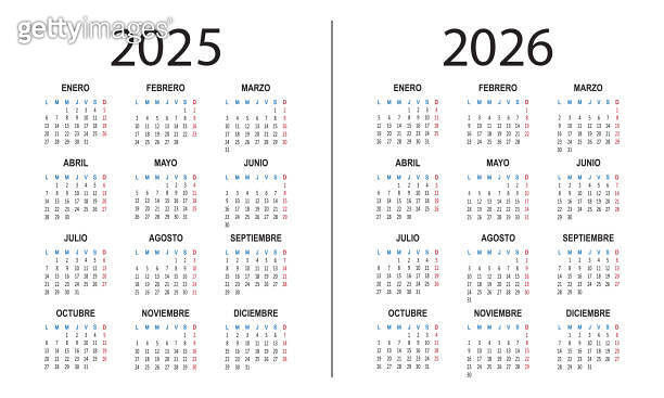 Spanish calendar 2025 2026 years Week starts on Monday Simple vector