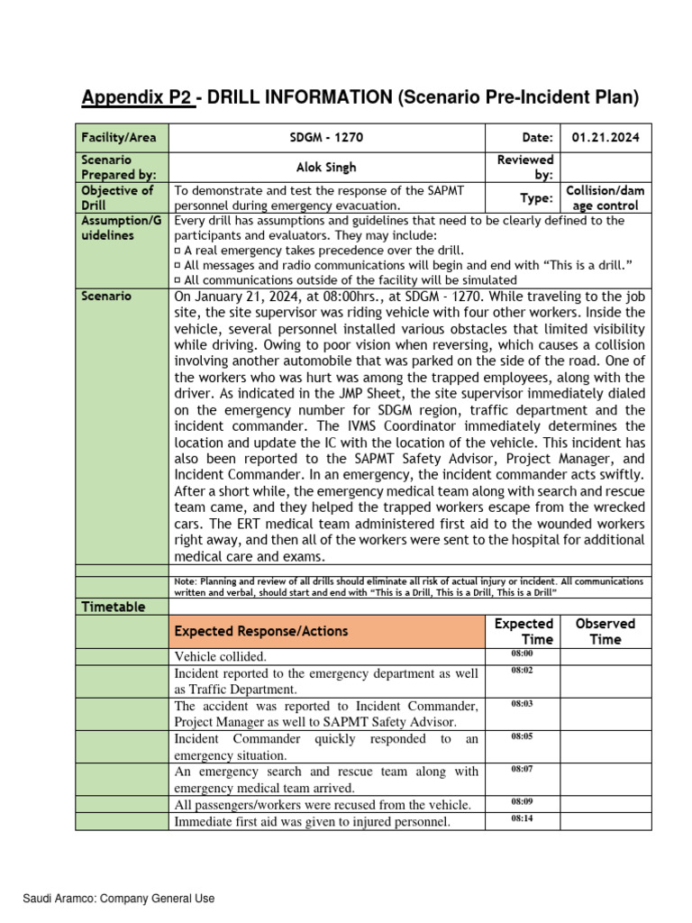 Emergency Response Drill Scenario Collision Damage Control (Cat