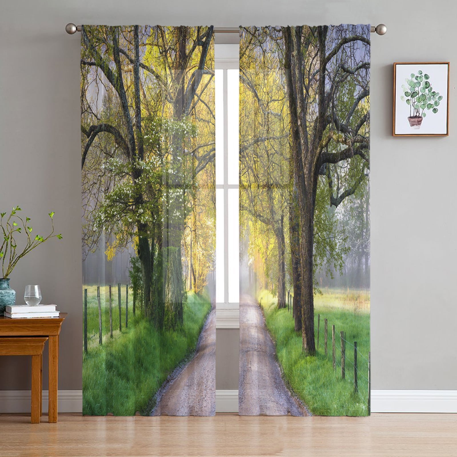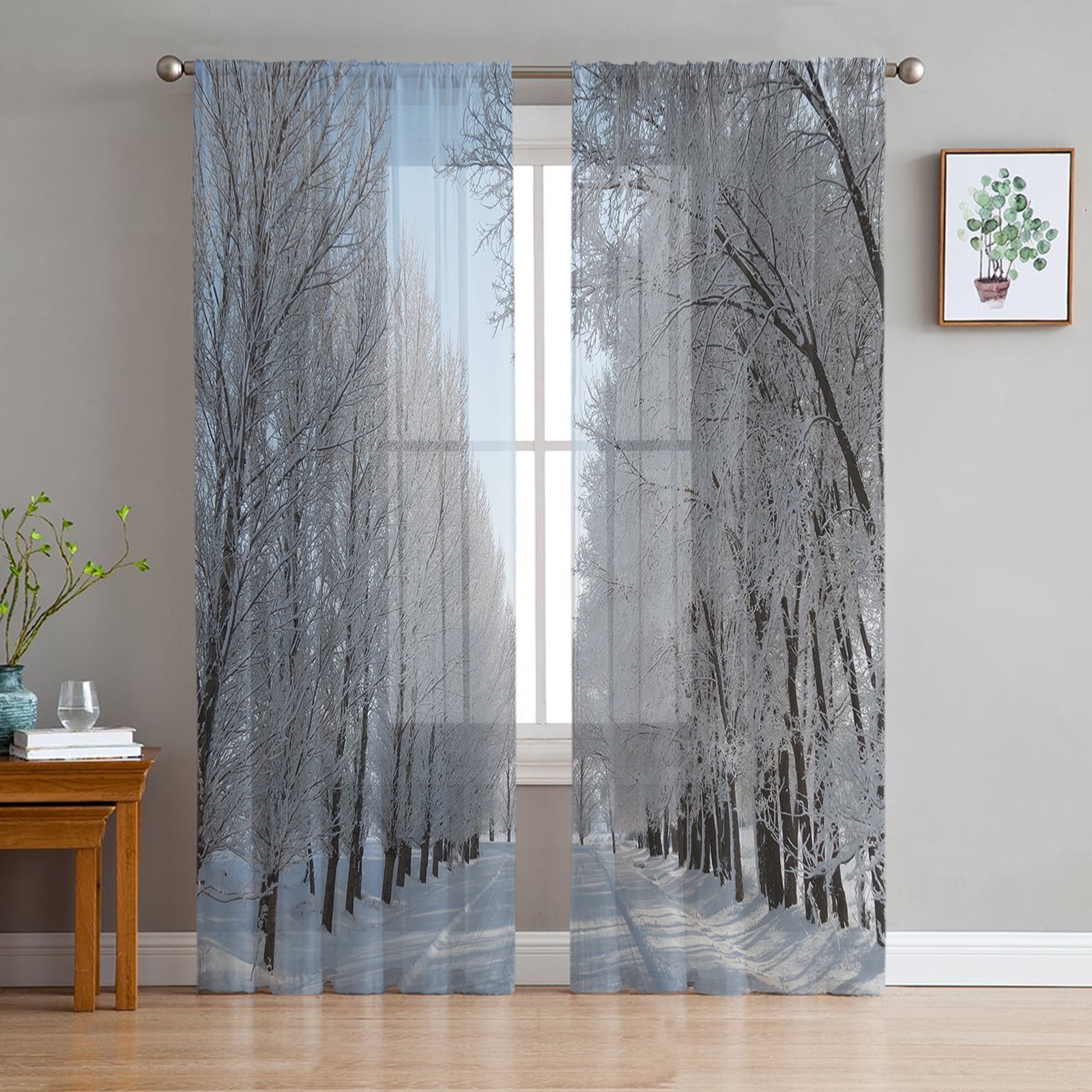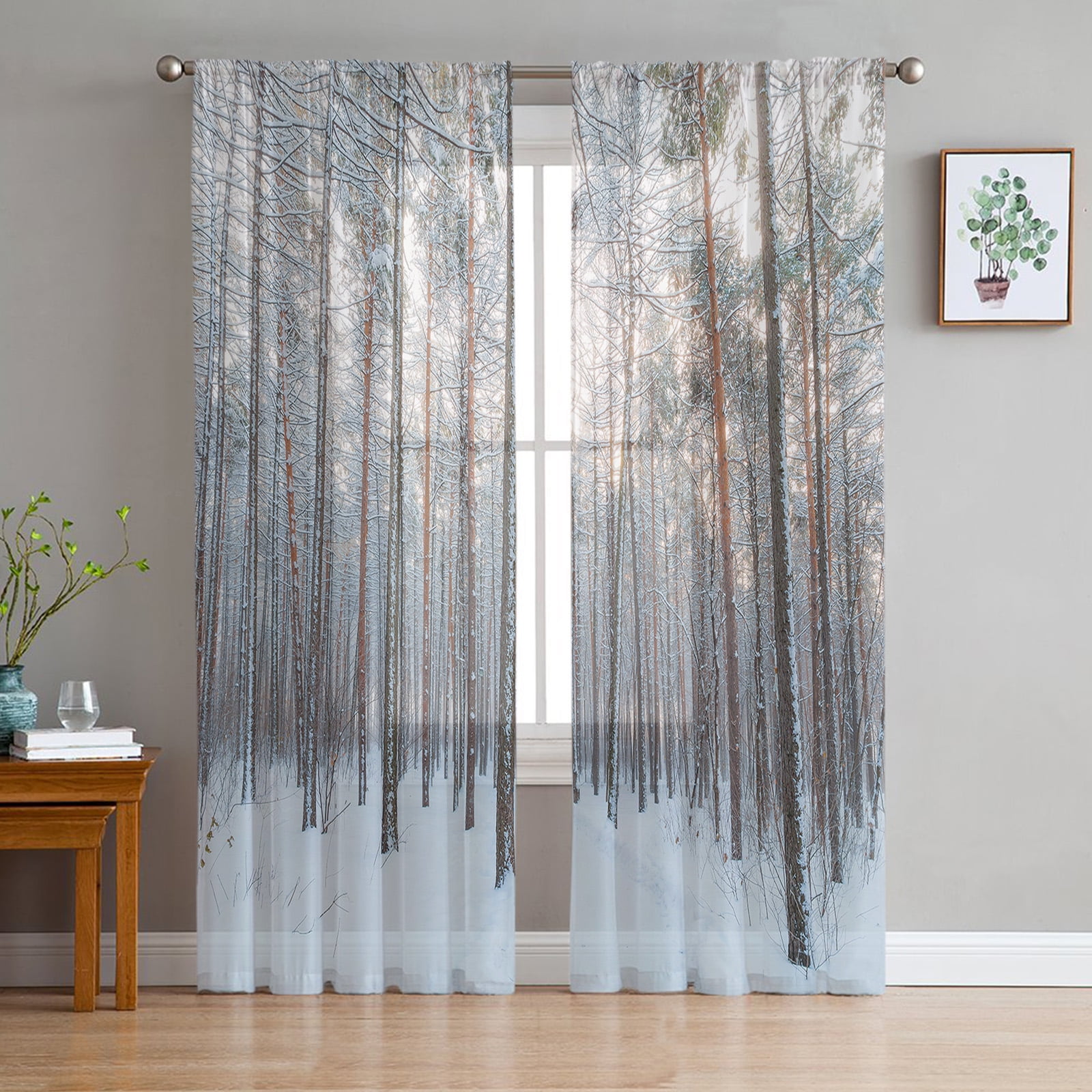 Deep Forest Snow Scene Tulle Curtains for Living Room Drapes Window