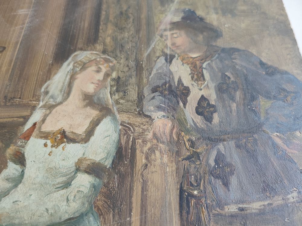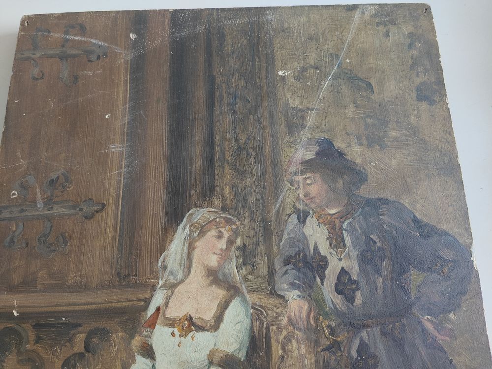 Tableau ancien en bois scène de cour charme d #39 antan garanti (D