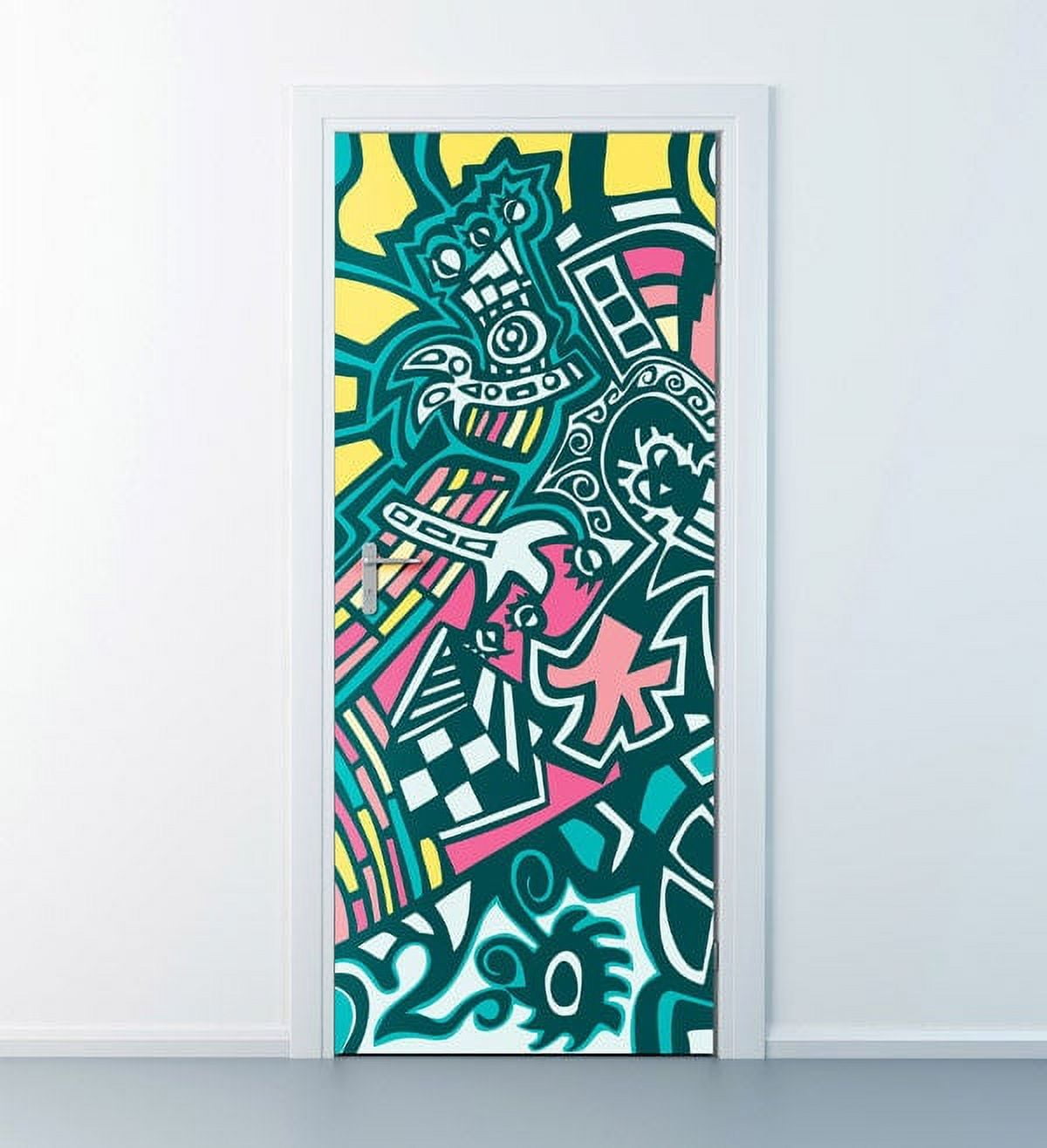 Cartoon Scene Painting Door Stickers Abstract Graffiti Full Door Cover