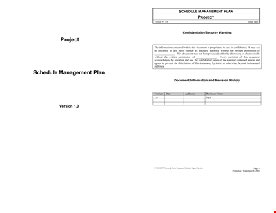 Schedule management plan template in Word and Pdf formats page 2 of 9
