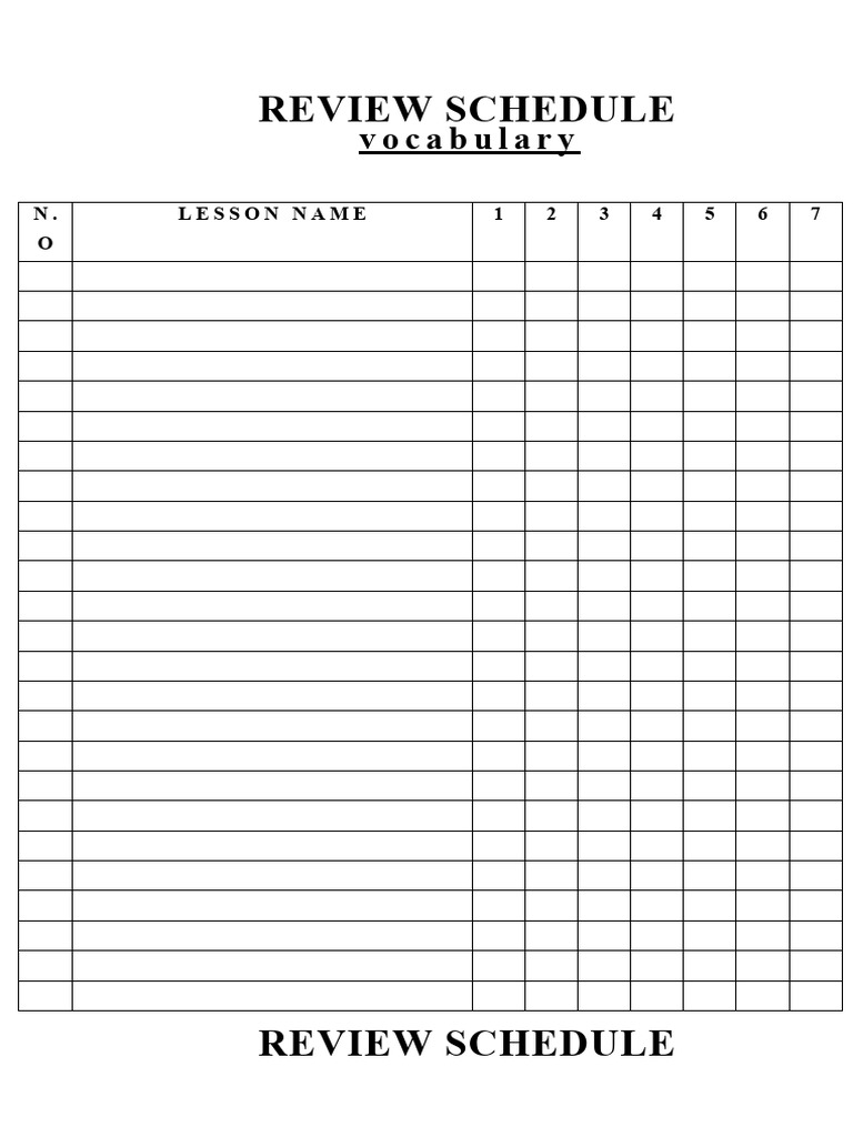Schedule Sheet Printable