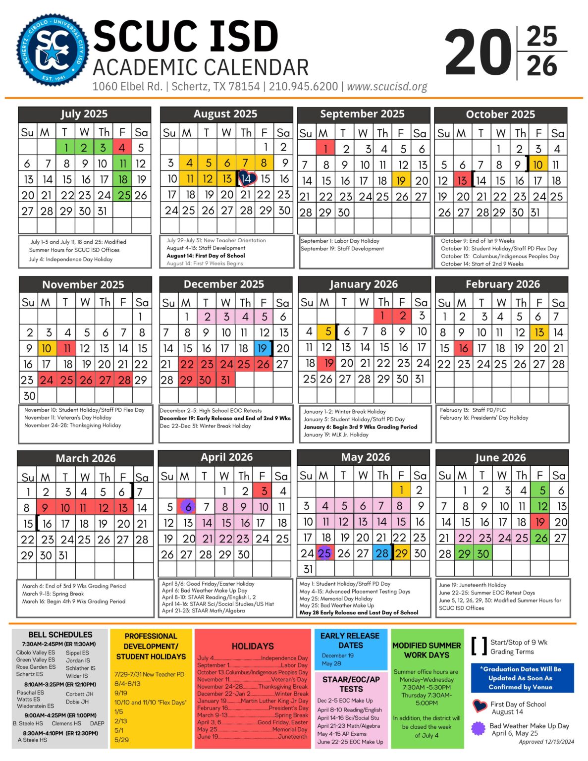Schertz Cibolo Universal City ISD School Calendar 25 26 PDF EduCounty