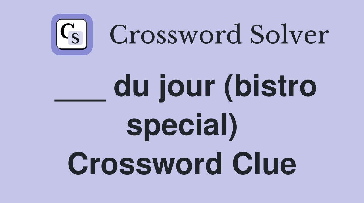du jour (bistro special) Crossword Clue Answers Crossword Solver