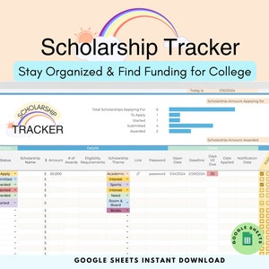 College Scholarship Tracker Template Google Sheets and Excel Spreadshe