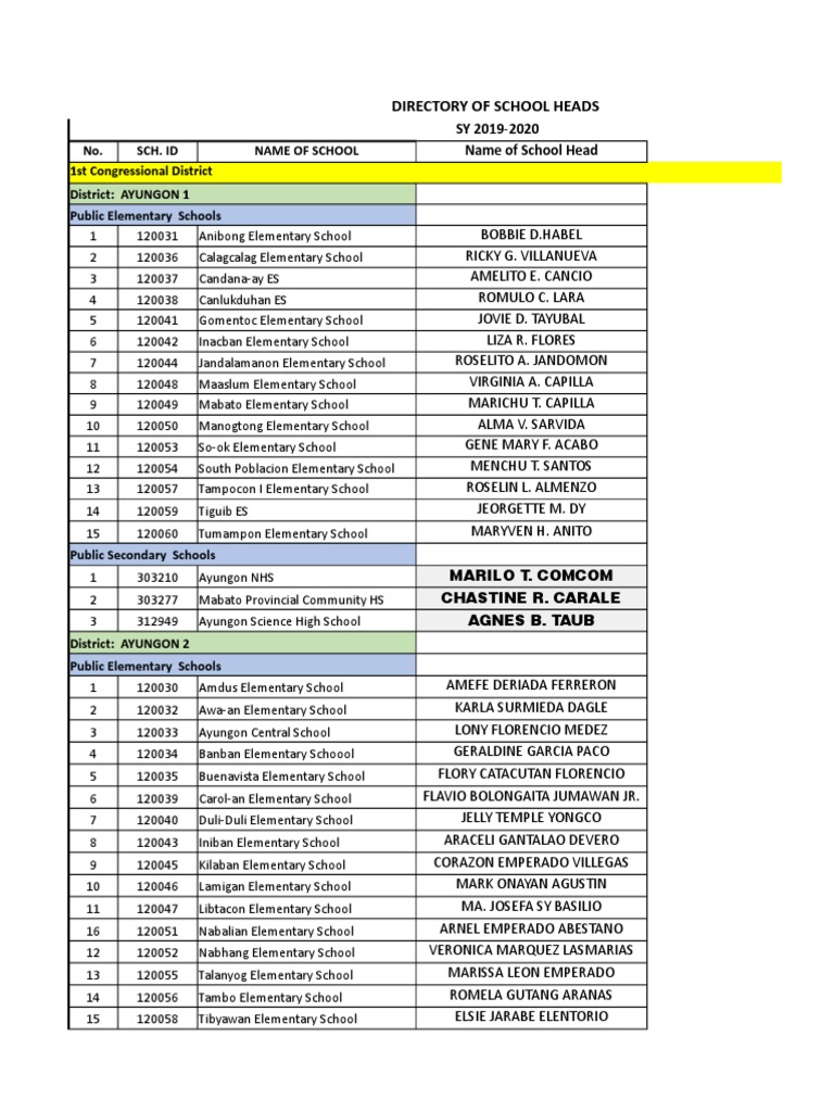 School Head Directory Form Download Free PDF Students School Types