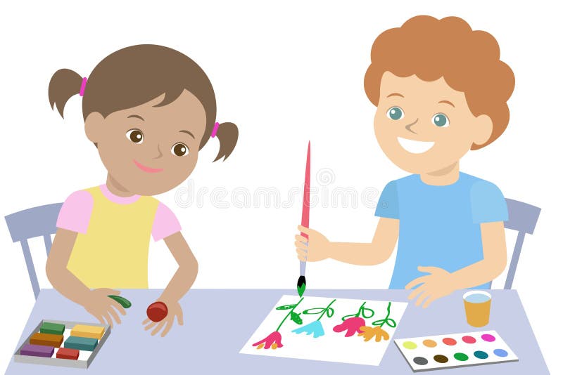 Small Children Draw Paint and Mold from Plasticine Vector Stock