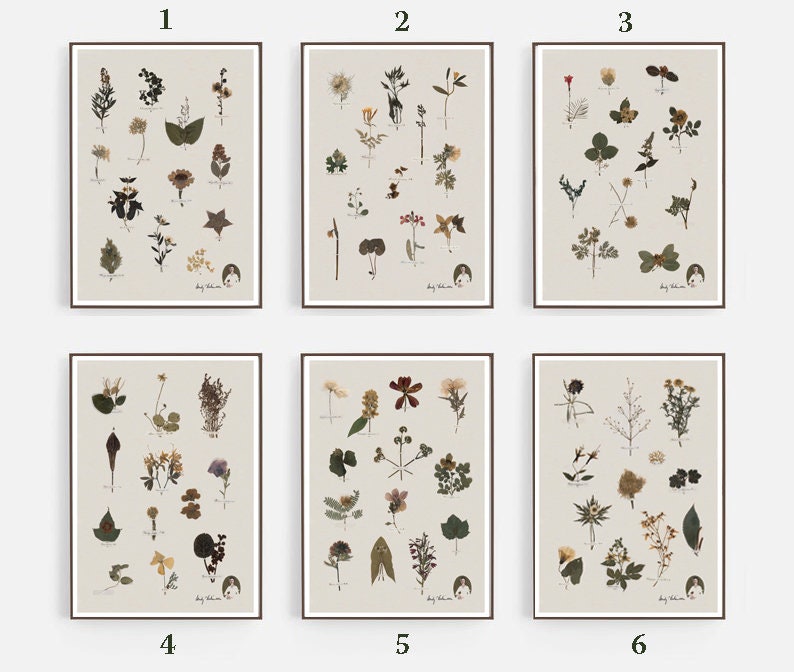 Emily Dickinsons Herbarium / Set of 6 Botanical Print / Vintage Plant