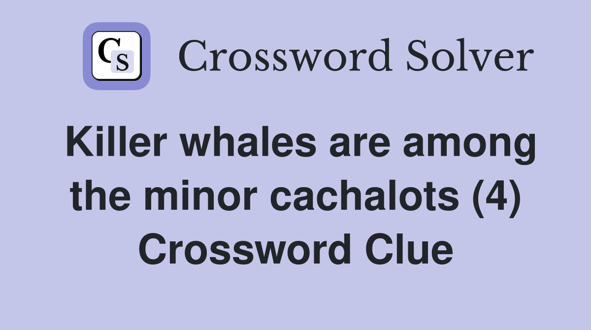 Killer whales are among the minor cachalots (4) Crossword Clue