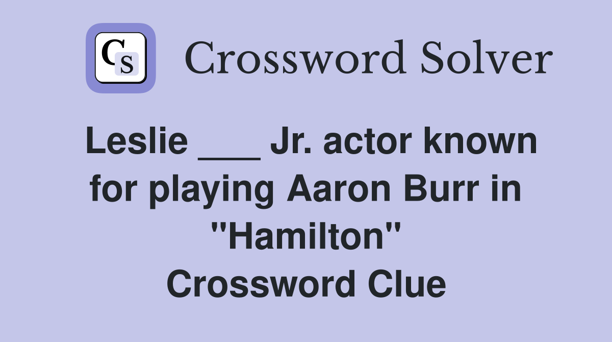 Aaron played by Leslie Odom Jr in quot Hamilton quot Crossword Clue