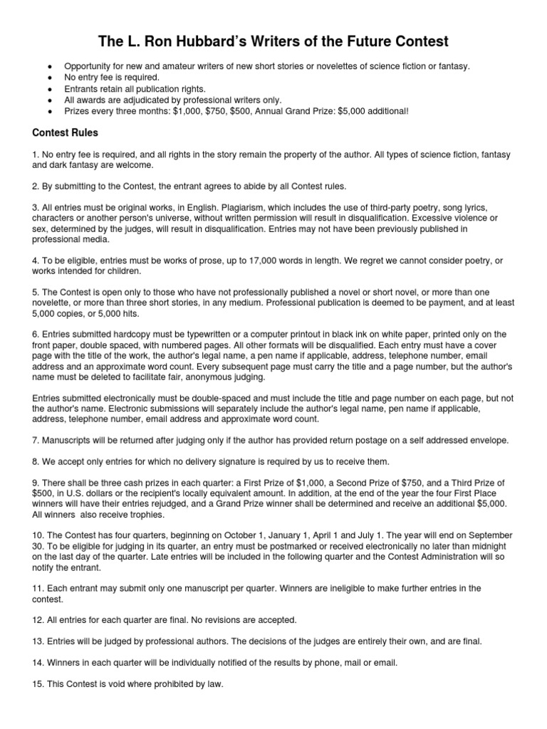 Free Sci Fi Award Rules Download Free PDF Writers Of The Future
