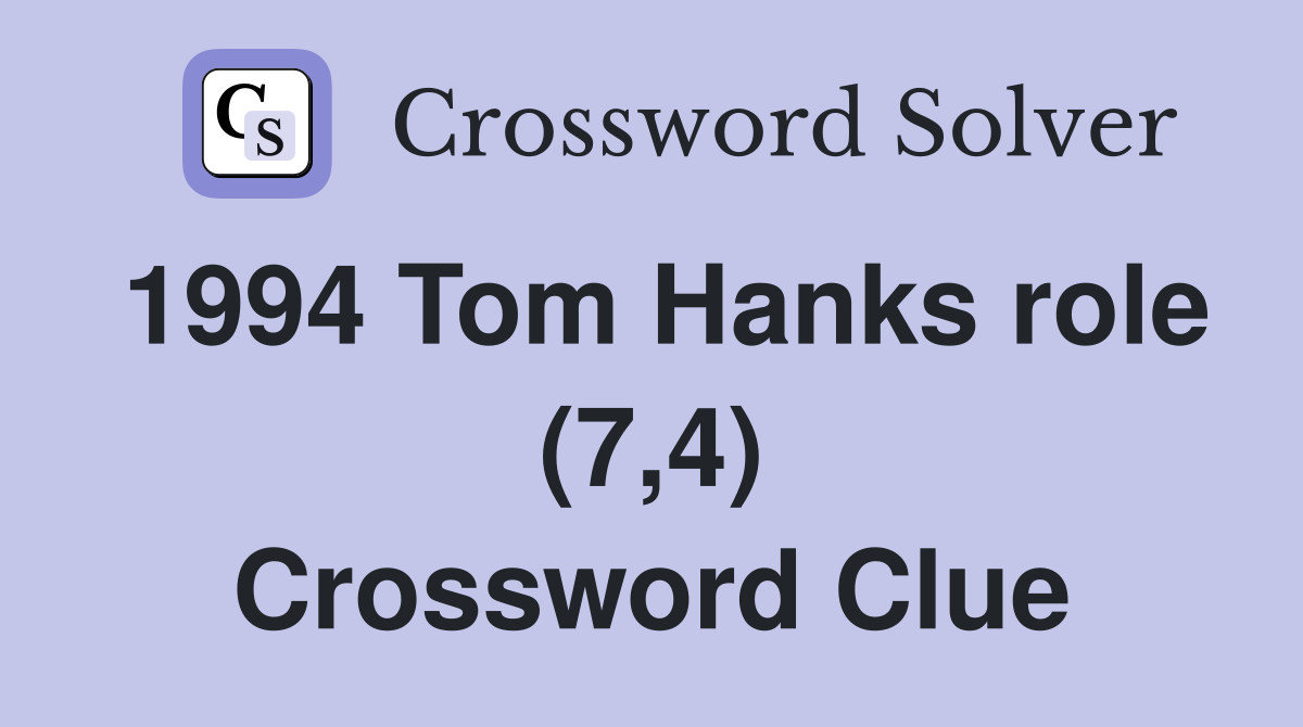 1994 Tom Hanks role (7 4) Crossword Clue Answers Crossword Solver
