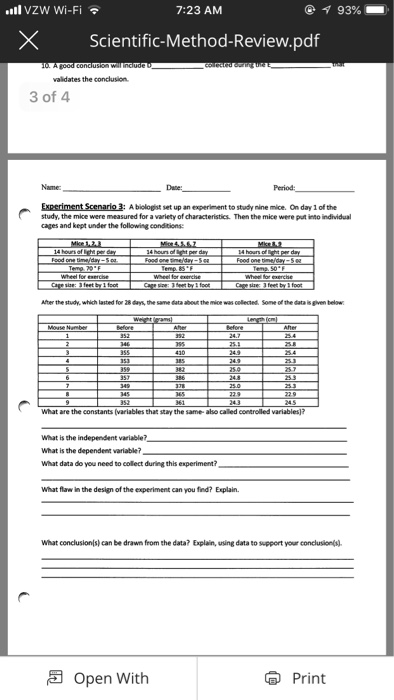 l VZW Wi Fi 7:23 AM 93% XScientific Method Review pdf Chegg com