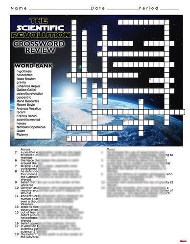 Scientific Revolution Crossword Puzzle Review Teaching Resources