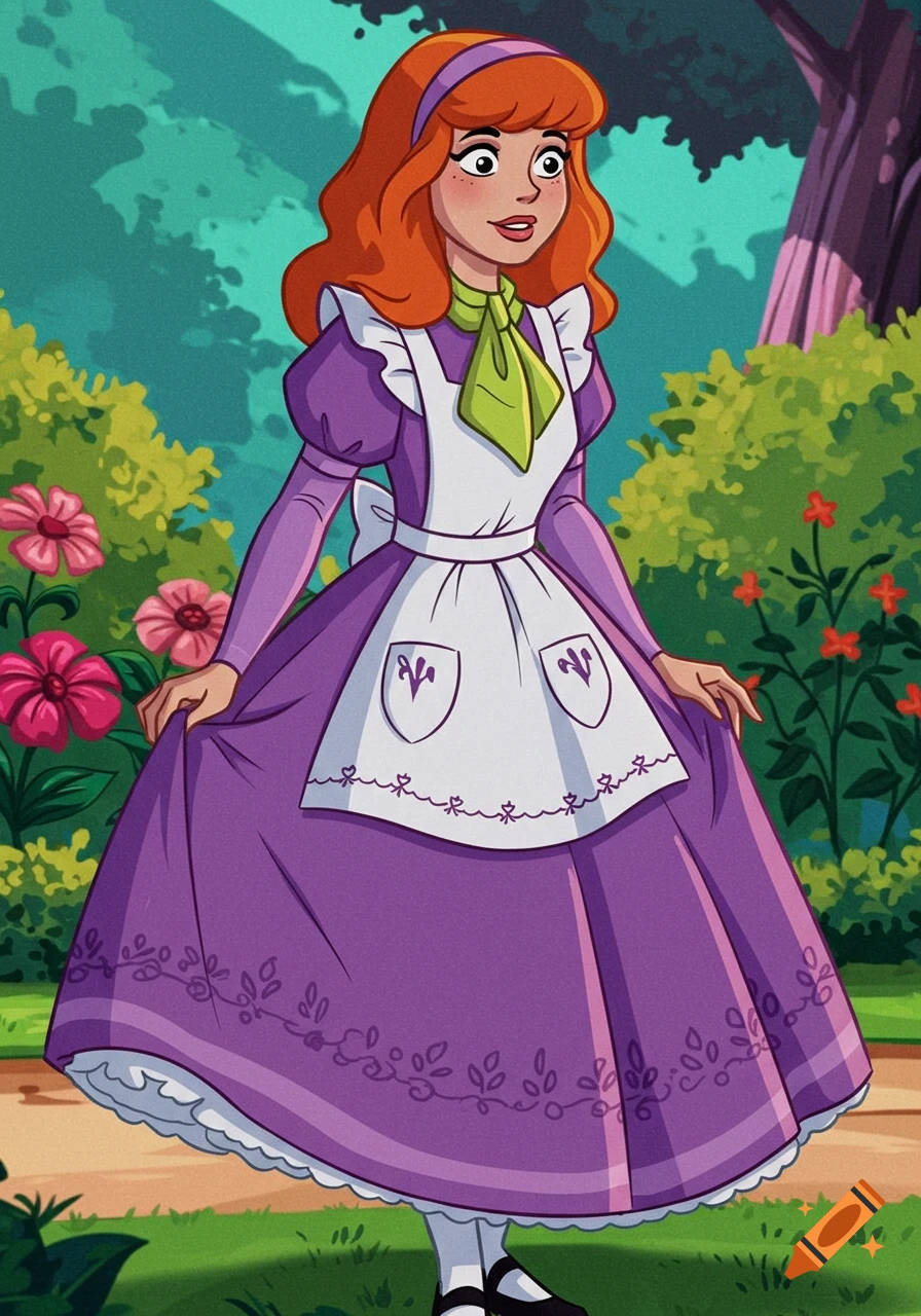 Daphne Blake from Scooby Doo wears a purple Alice in Wonderland dress