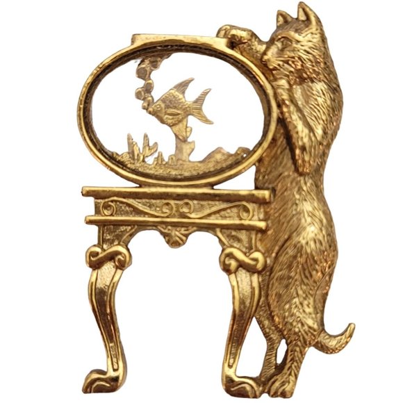1928 Jewelry 928 Brand Gold Tone Cat And Fish Bowl Jelly Style
