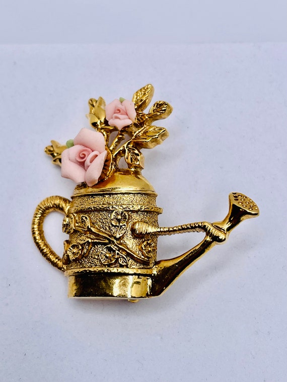 Vintage 1928 Brand Porcelain Double Rose Pink Rhinest Gem
