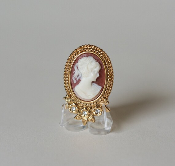 1928 Brand Floral Cameo Locket Brooch Enamel Gold Pla Gem