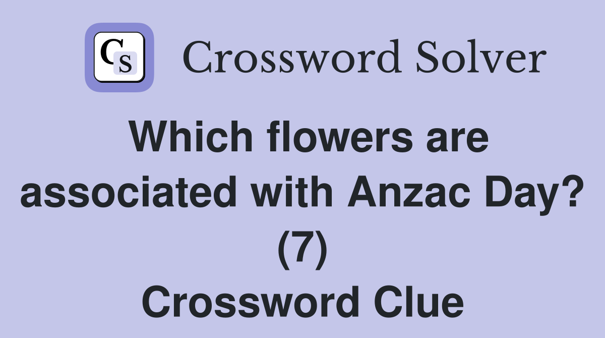Which flowers are associated with Anzac Day? (7) Crossword Clue