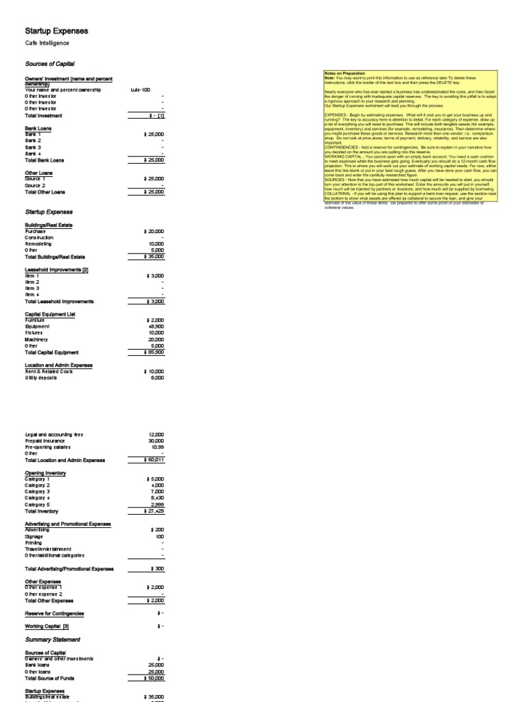 Startup Expenses and Capitalization Spreadsheet Peterainsworth