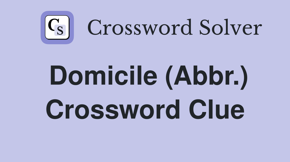 Domicile (Abbr ) Crossword Clue Answers Crossword Solver