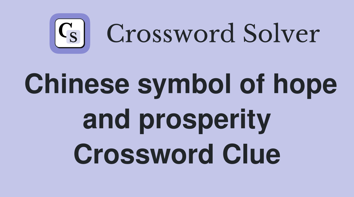 Chinese symbol of hope and prosperity Crossword Clue Answers