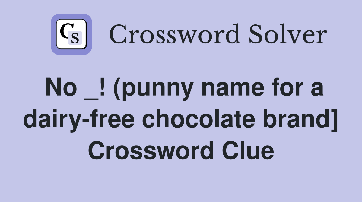 No (punny name for a dairy free chocolate brand Crossword Clue