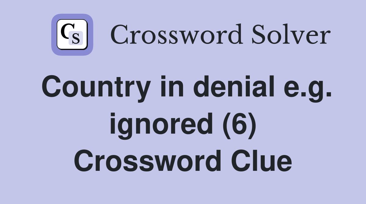 Country in denial e g ignored (6) Crossword Clue Answers Crossword