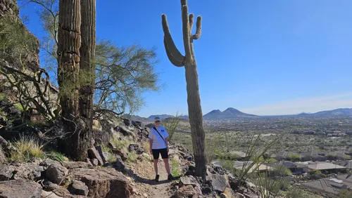 Hiker on Pinnacle Peak Trail in North Scottsdale with Cactus and
