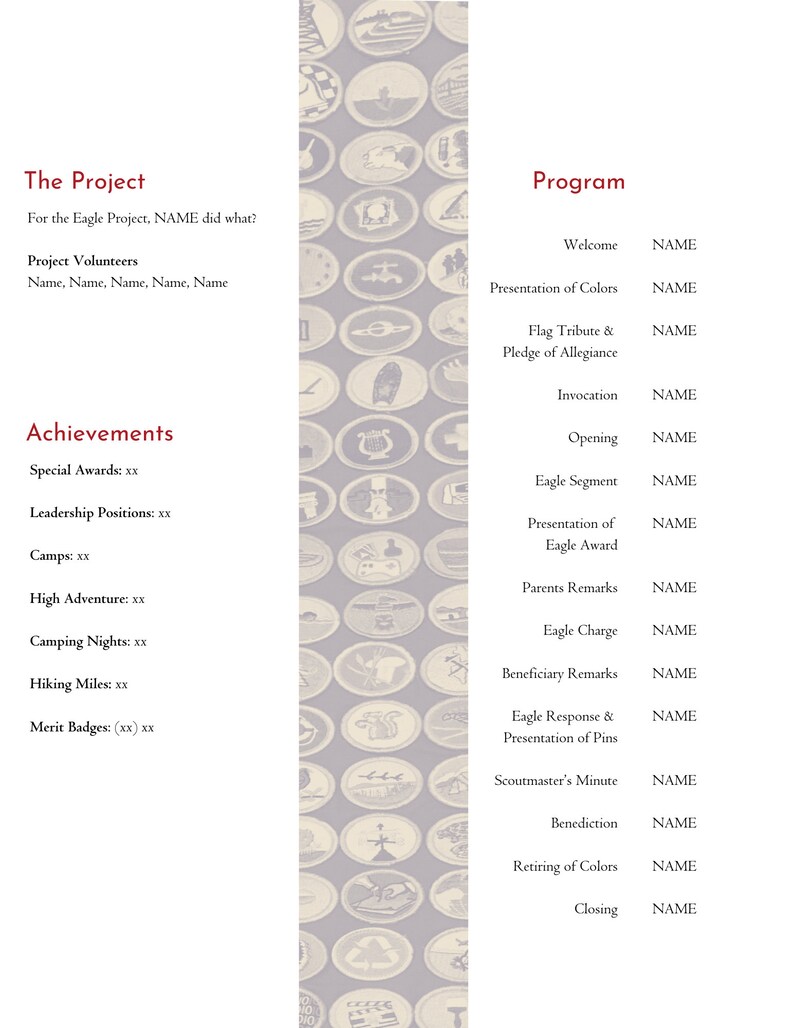 Eagle Scout Court of Honor Editable Program Bifold Etsy