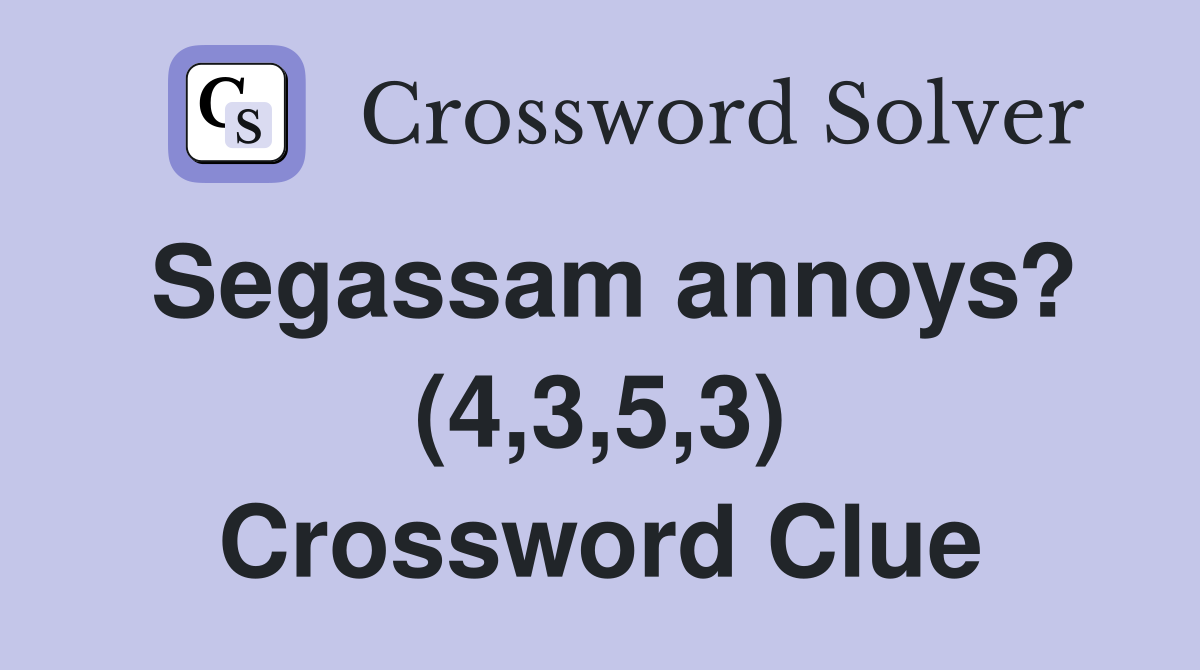 Segassam annoys? (4 3 5 3) Crossword Clue Answers Crossword Solver
