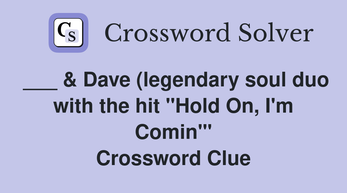 Dave (legendary soul duo with the hit quot Hold On I #39 m Comin #39 quot Crossword