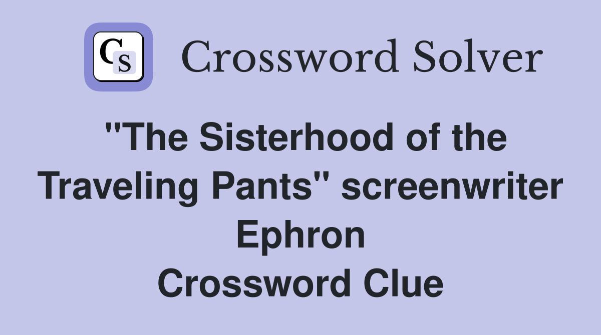 quot The Sisterhood of the Traveling Pants quot screenwriter Ephron Crossword