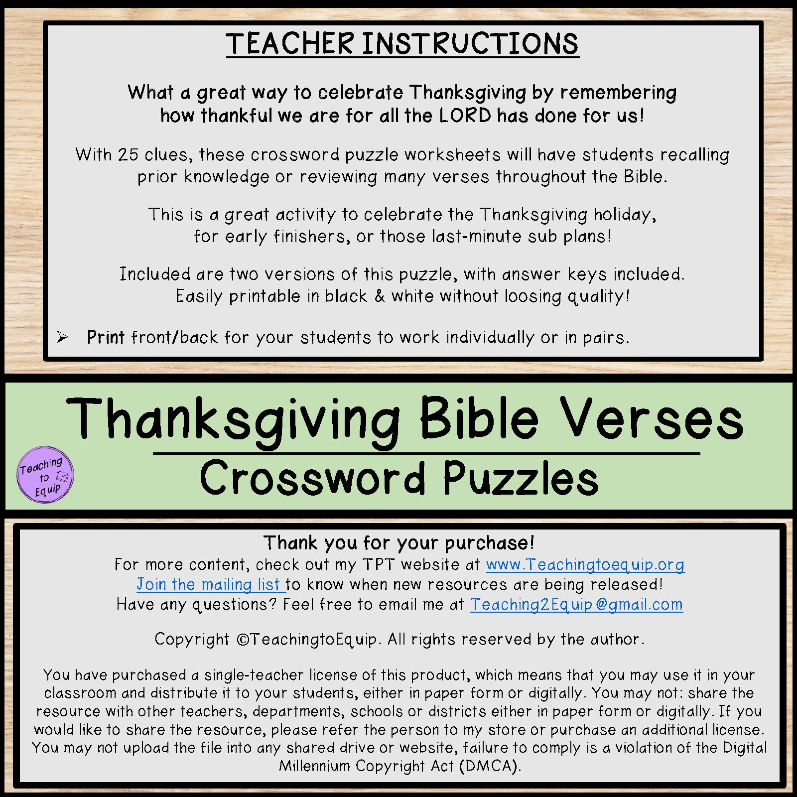 Thanksgiving Bible Scriptures Crossword Puzzle Activity Classful