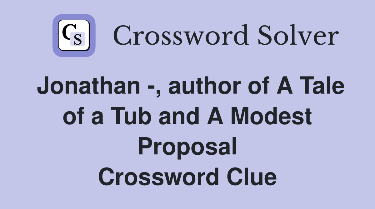 Jonathan author of A Tale of a Tub and A Modest Proposal Crossword
