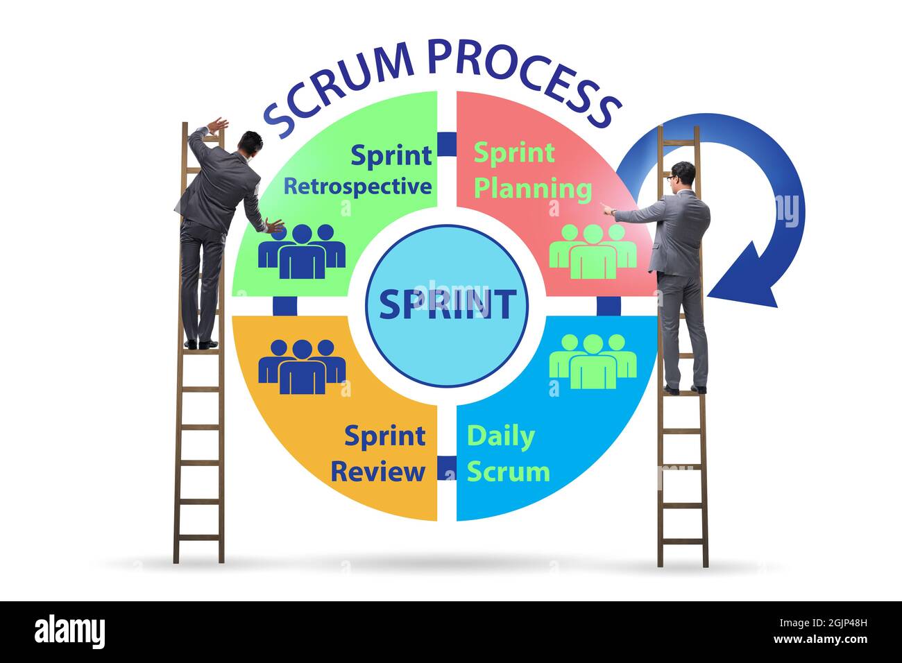 Scrum process illustration with the businessman Stock Photo Alamy