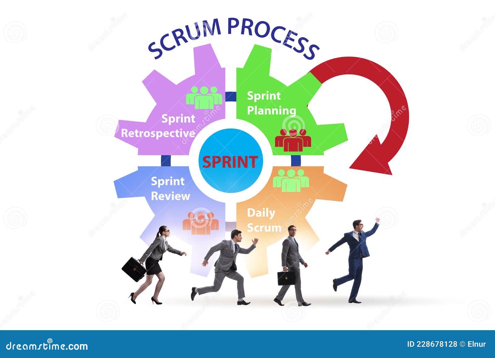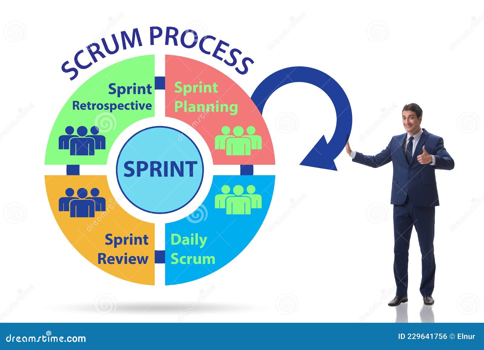 Scrum process illustration with businessman Stock Photo Adobe Stock