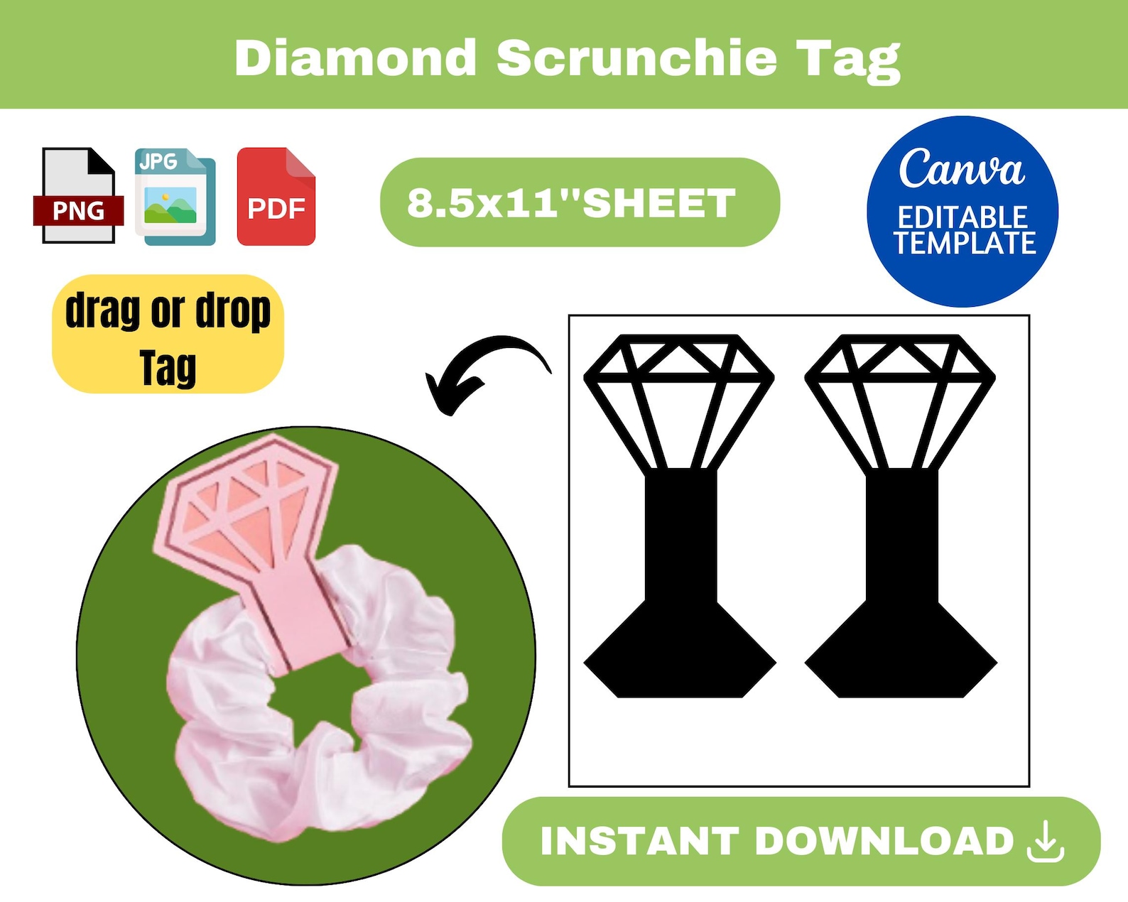 Diamond Scrunchie Tag Template Svg Png Dxf Eps Canva Etsy UK