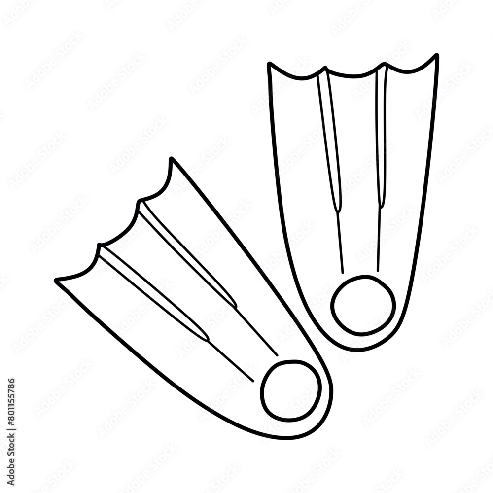 Diving flippers Doodle icon on white background Hand Drawn Outline