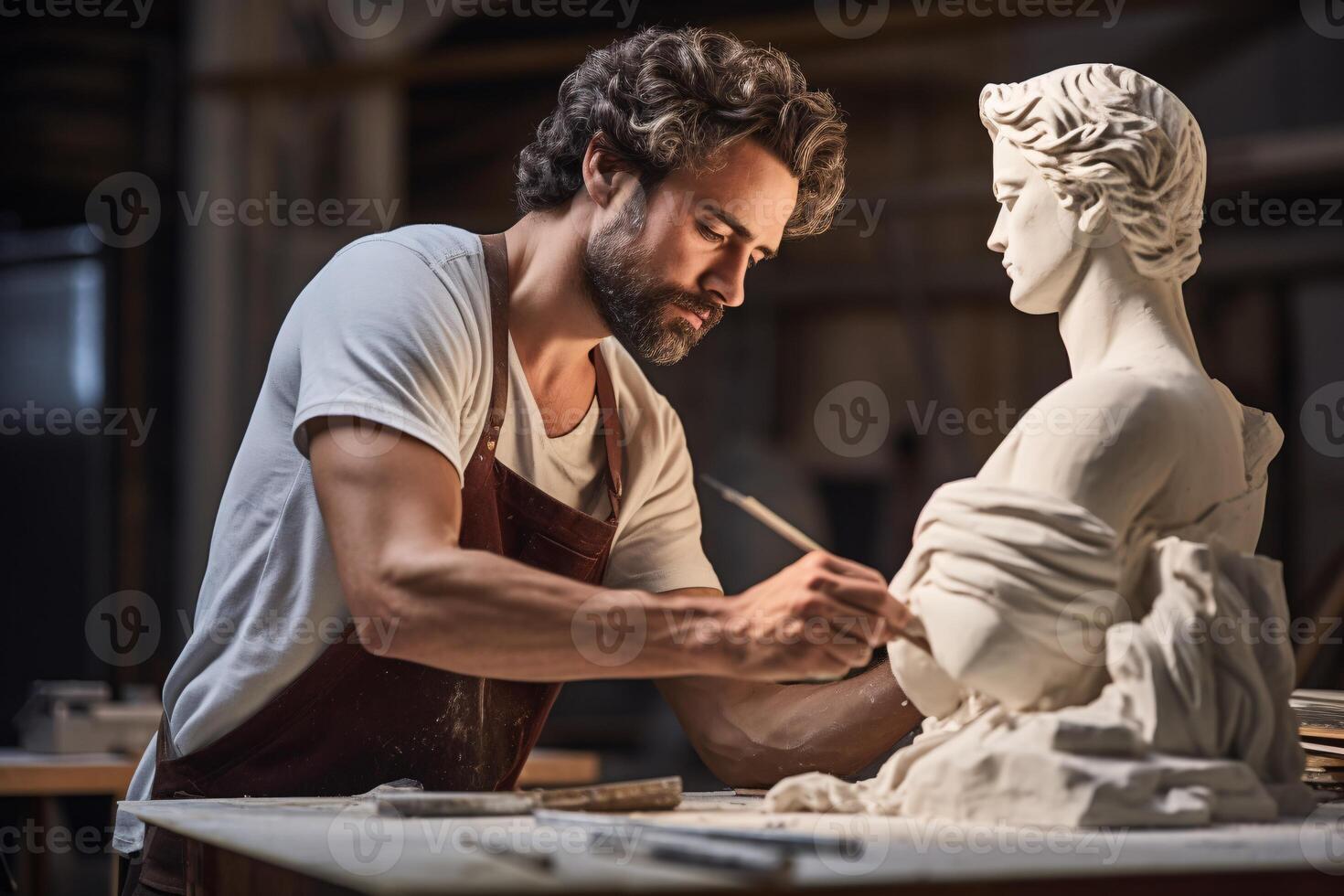 Premium Photo Sculptor Creating A Masterpiece In His Workshop