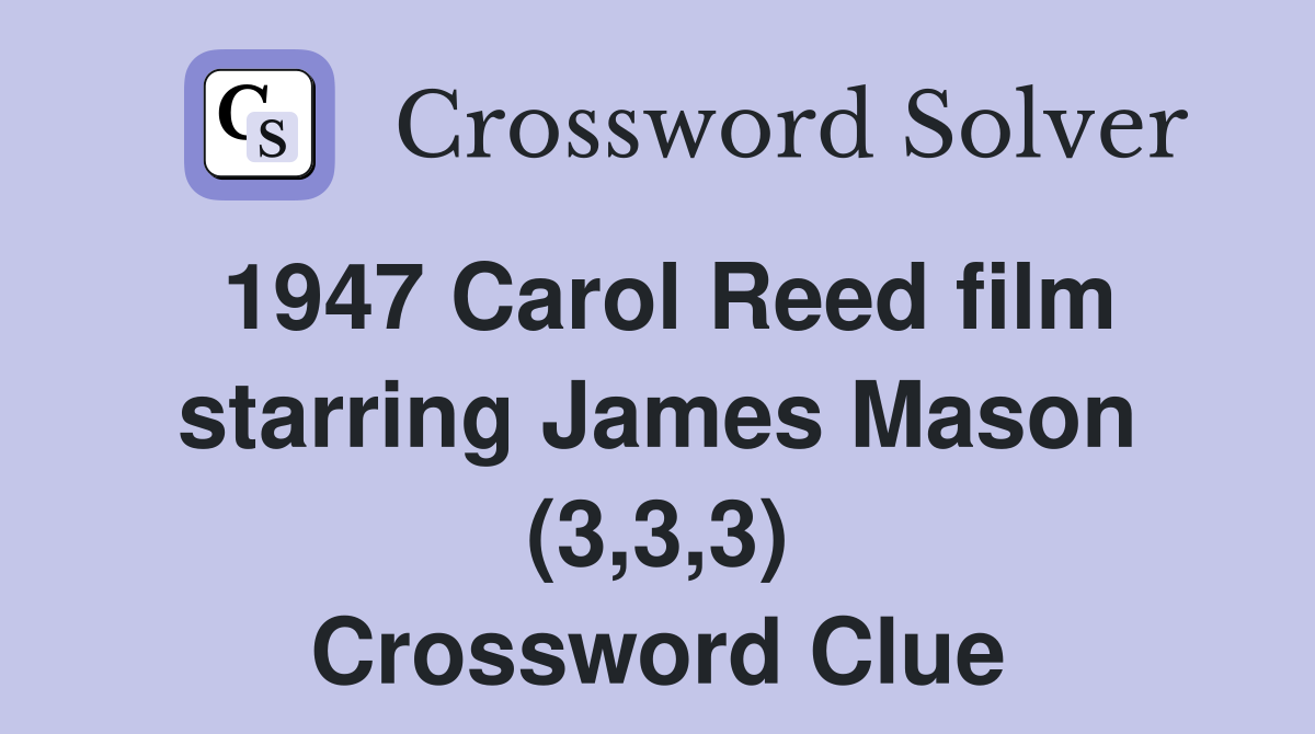1947 Carol Reed film starring James Mason (3 3 3) Crossword Clue