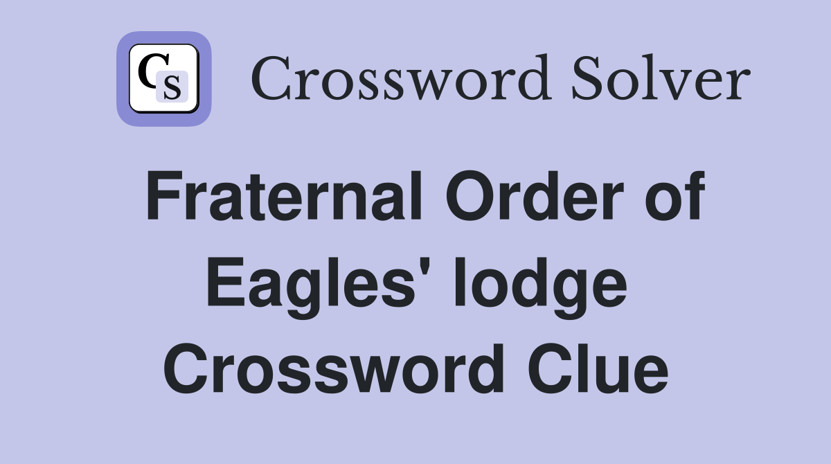 Fraternal Order of Eagles #39 lodge Crossword Clue Answers Crossword