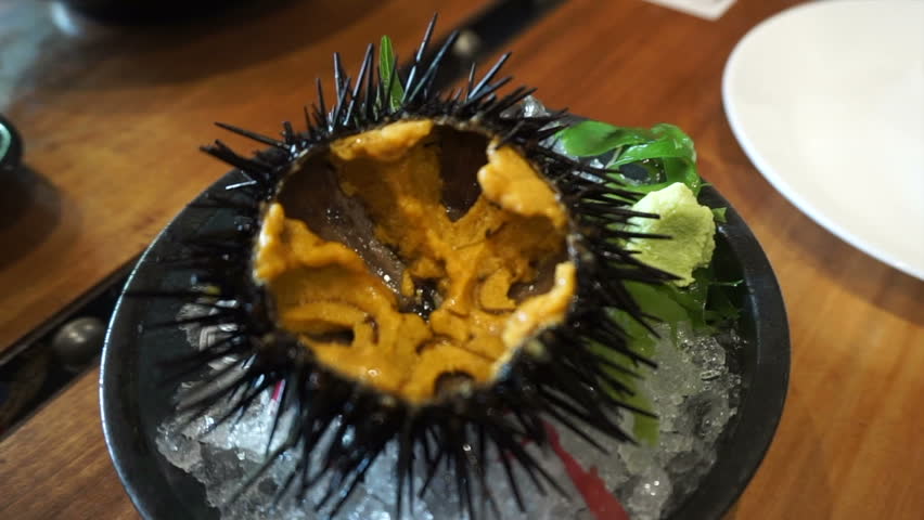 fresh sea urchin famous japanese food Stock Footage Video (100% Royalty