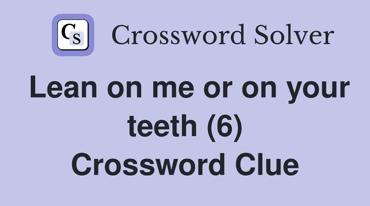 Lean on me or on your teeth (6) Crossword Clue Answers Crossword Solver
