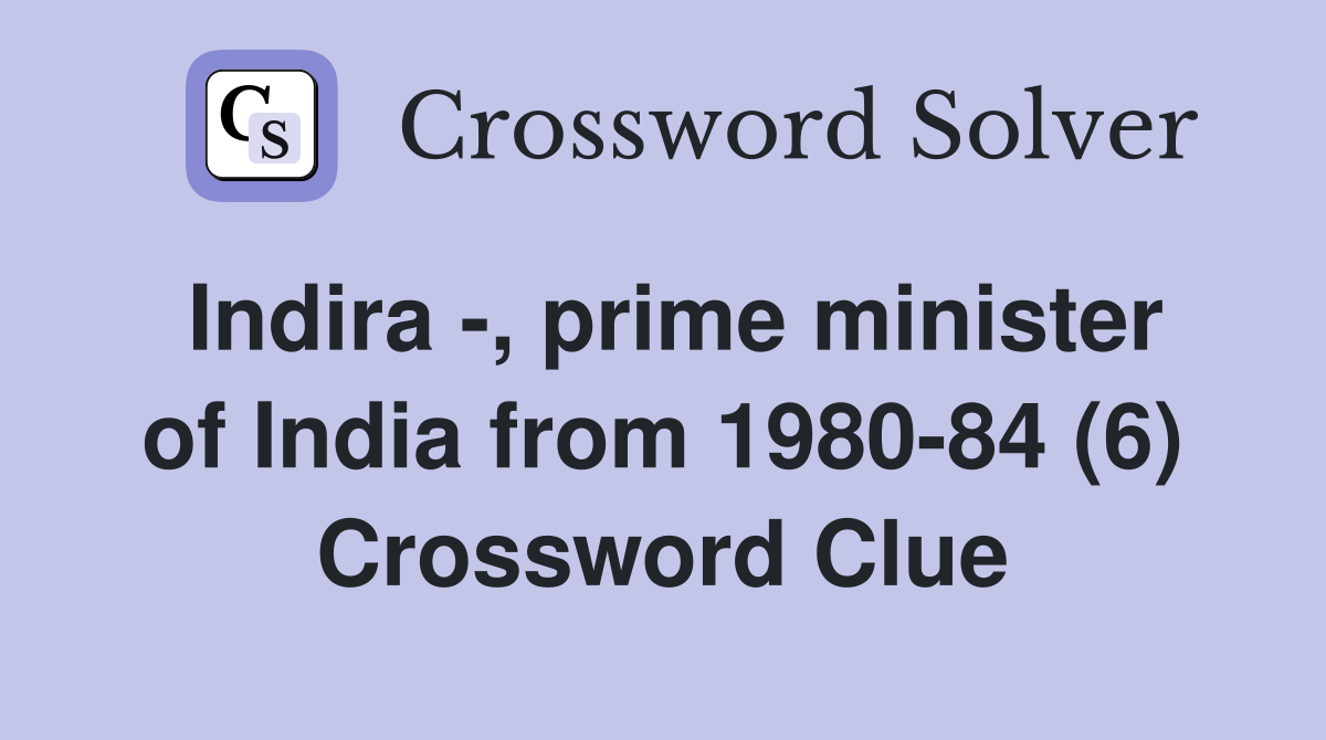 Indira prime minister of India from 1980 84 (6) Crossword Clue
