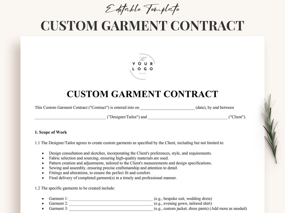EDITABLE Custom Garment Contract Canva Template Etsy