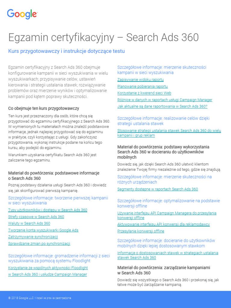 Study guide english search ads 360 certification exam © 2018 Google
