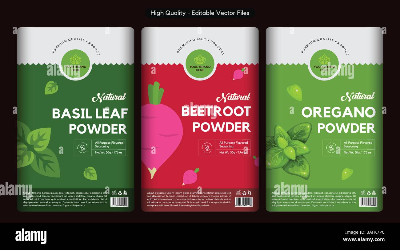 Basil powder beetroot powder oregano powder labels design herbs label
