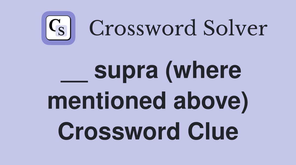 supra (where mentioned above) Crossword Clue Answers Crossword